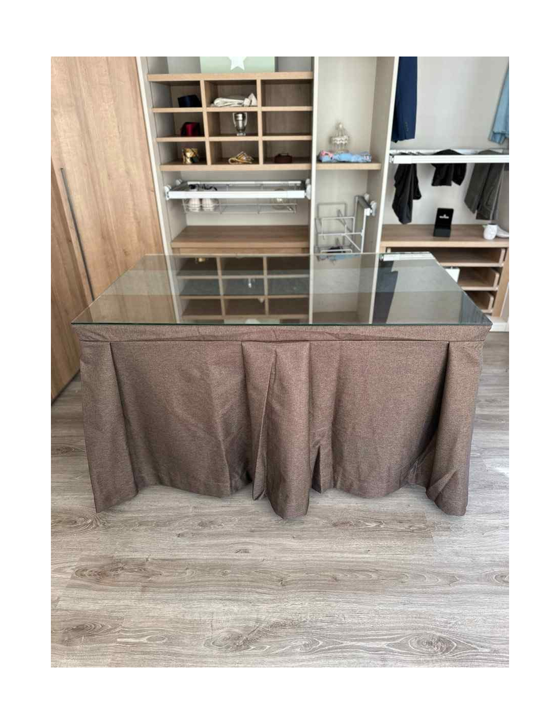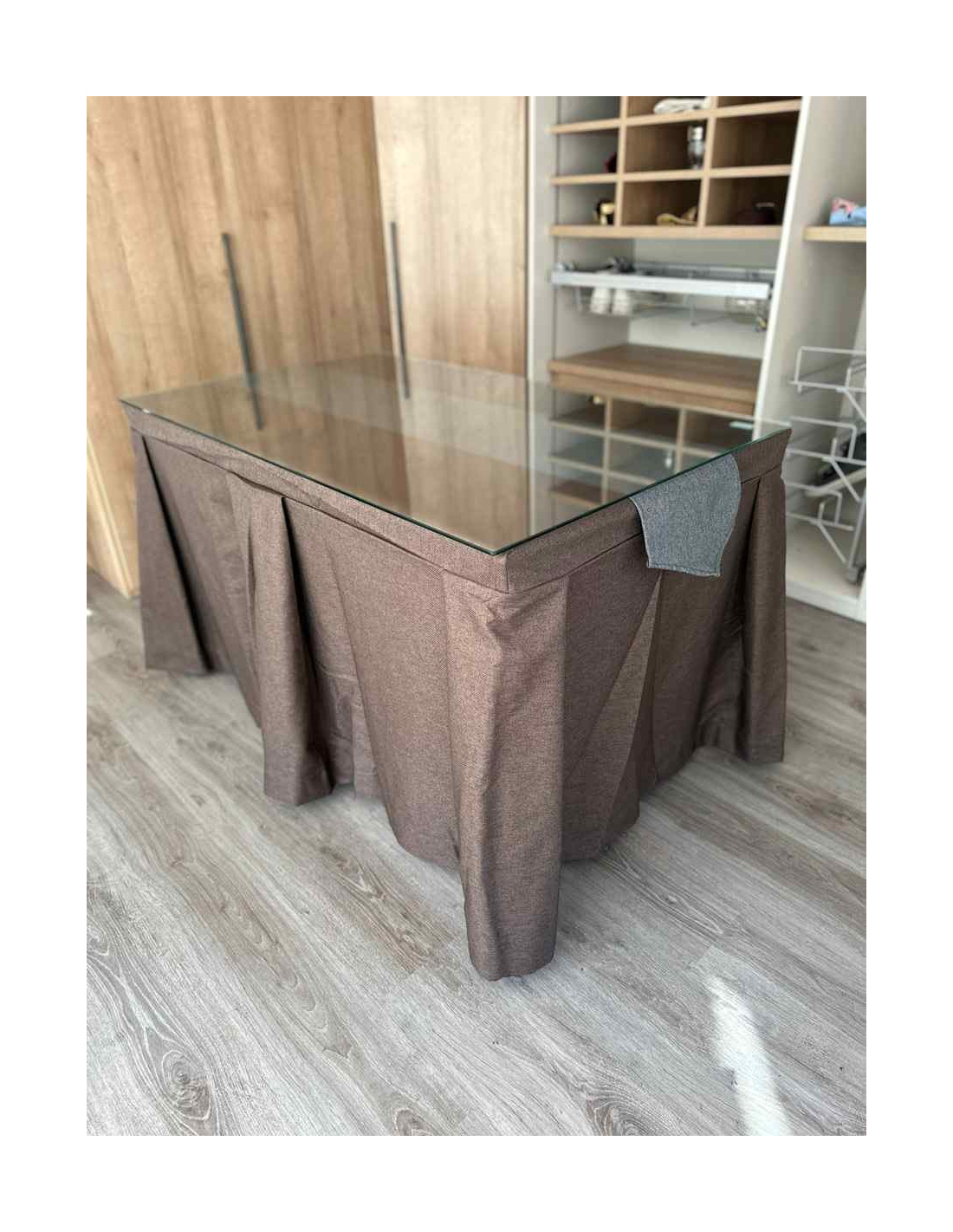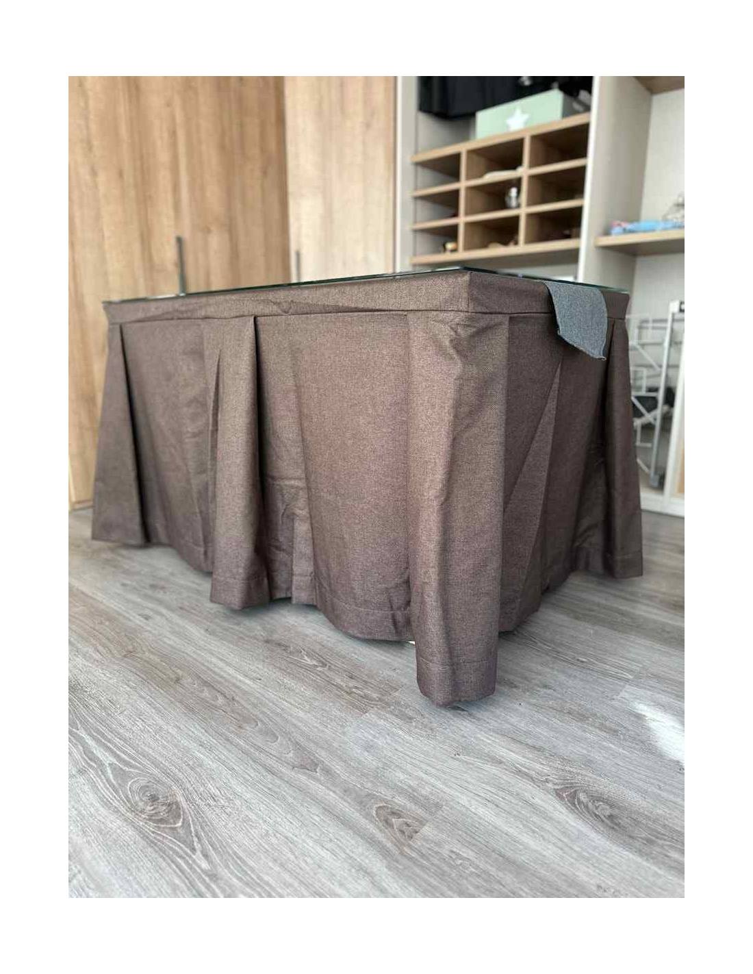 Eleva el refinamiento en tu mesa con nuestra Falda de Mesa Camilla Moderna Antimanchas con pliegues hacia afuera. Ideal para hogares con niños y mascotas, esta tela de lujo fusiona elegancia y practicidad. Mantén tu mesa siempre impecable y disfruta de momentos cálidos en familia sin preocupaciones. ¡Haz que cada comida sea especial con nosotros!