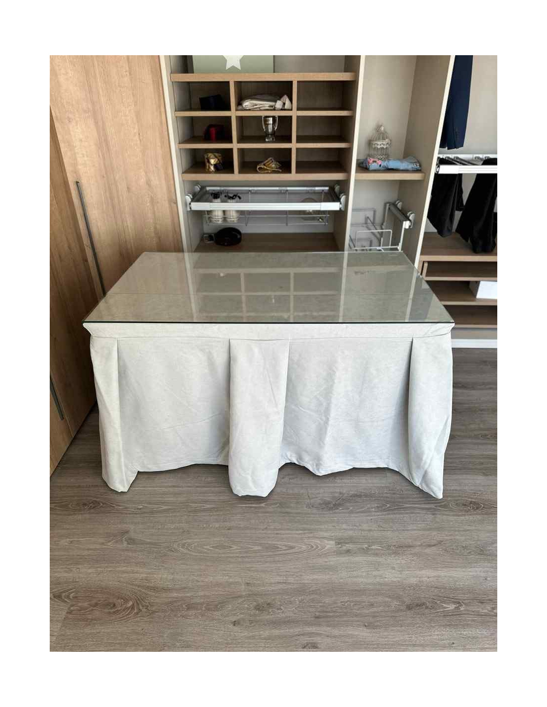 Eleve el estilo y la funcionalidad de su hogar con nuestra exclusiva ropa o falda de mesa de camilla, una fusión perfecta de diseño italiano y artesanía española. Cada pieza es una obra maestra de la elegancia y la innovación, con un tejido antimanchas de avanzada que asegura una protección inquebrantable contra derrames y manchas. Esta característica es esencial para hogares con niños y mascotas, proporcionando una tranquilidad absoluta al mantener su mesa impecable.
