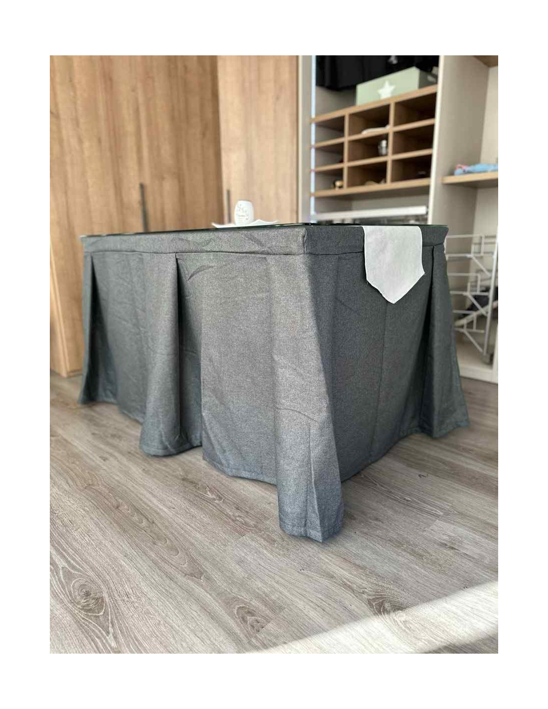 Ropa de Mesa Camilla Moderna Antimanchas color Marengo con Camino Gris Perla