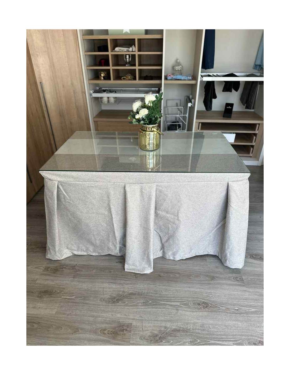 Eleve el estilo y la funcionalidad de su hogar con nuestra exclusiva ropa o falda de mesa de camilla, una fusión perfecta de diseño italiano y artesanía española. Cada pieza es una obra maestra de la elegancia y la innovación, con un tejido antimanchas de avanzada que asegura una protección inquebrantable contra derrames y manchas. Esta característica es esencial para hogares con niños y mascotas, proporcionando una tranquilidad absoluta al mantener su mesa impecable.