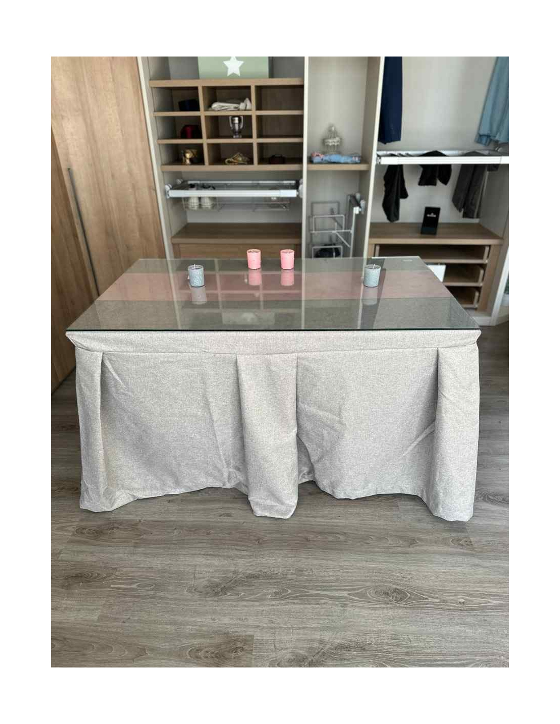 Eleve el estilo y la funcionalidad de su hogar con nuestra exclusiva ropa o falda de mesa de camilla, una fusión perfecta de diseño italiano y artesanía española. Cada pieza es una obra maestra de la elegancia y la innovación, con un tejido antimanchas de avanzada que asegura una protección inquebrantable contra derrames y manchas. Esta característica es esencial para hogares con niños y mascotas, proporcionando una tranquilidad absoluta al mantener su mesa impecable.