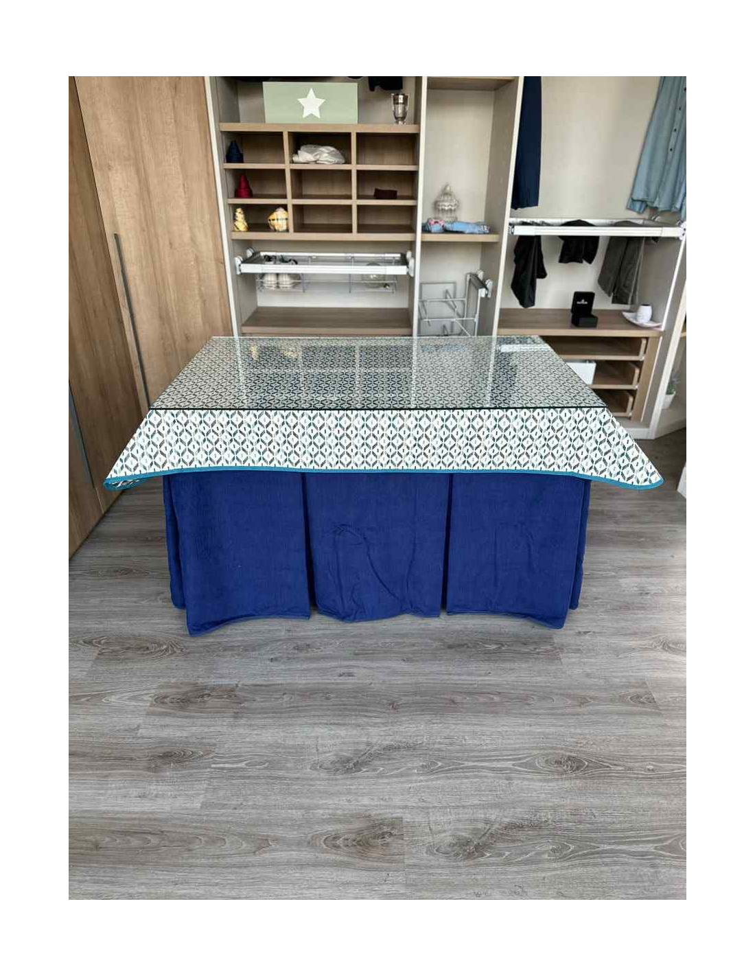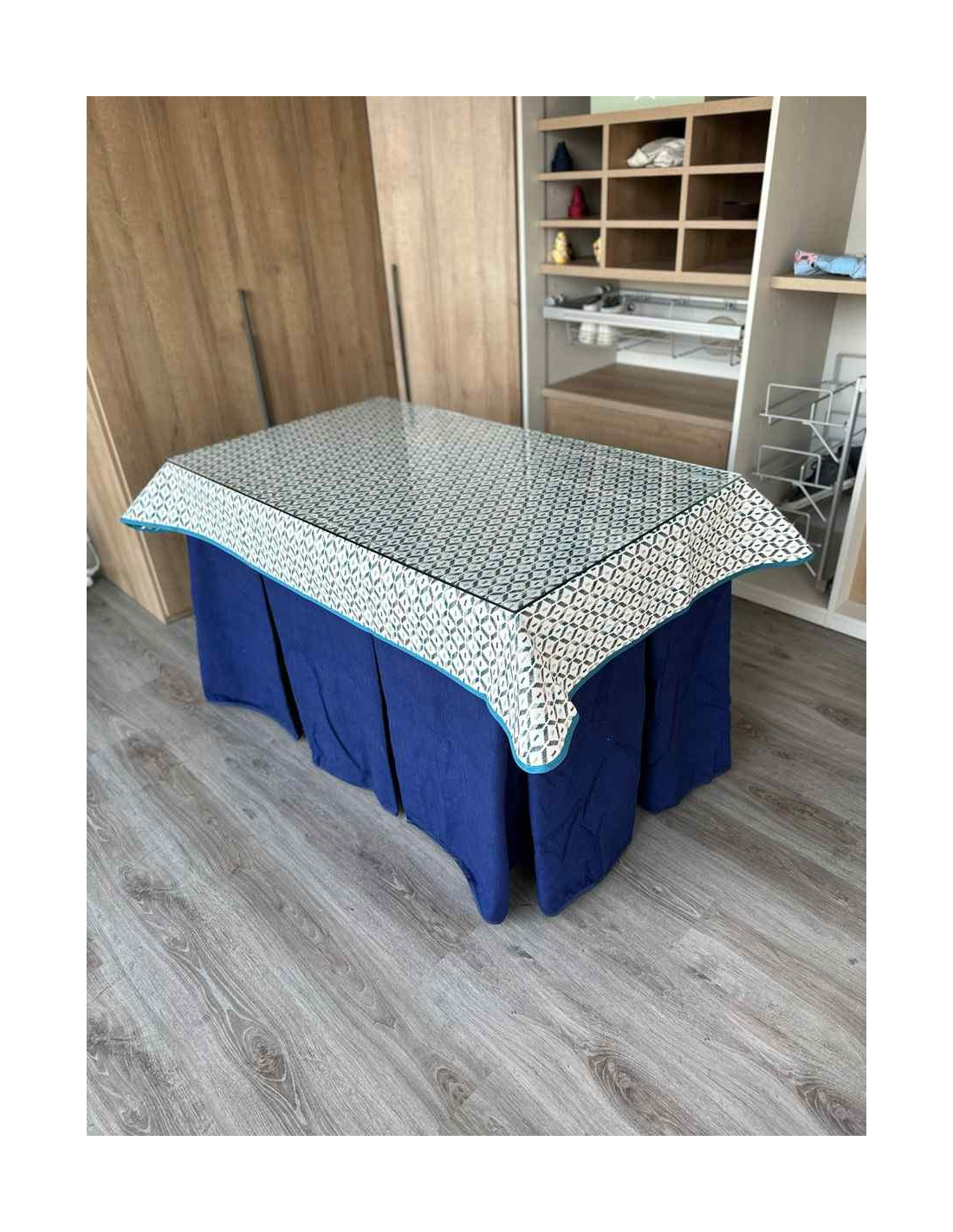 Ropa de Mesa Camilla Doble Grueso 10 Pliegues Azul con Tapete Geo