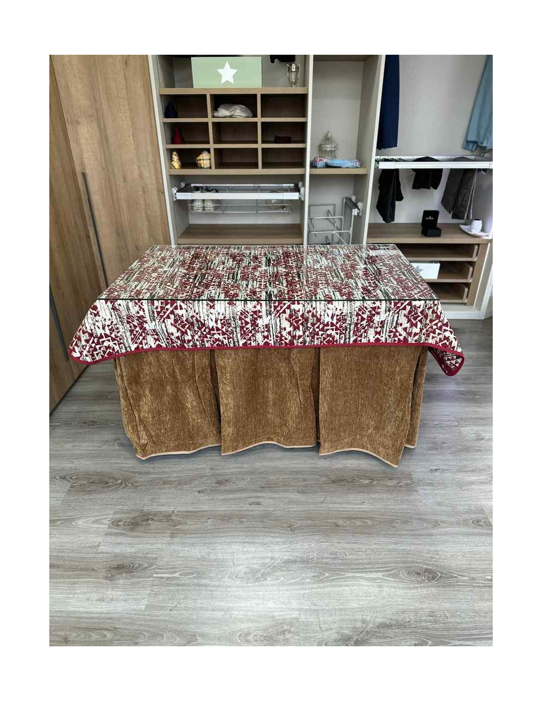 Ropa de Mesa Camilla Doble Grueso 10 Pliegues Café con Tapete Mosaico