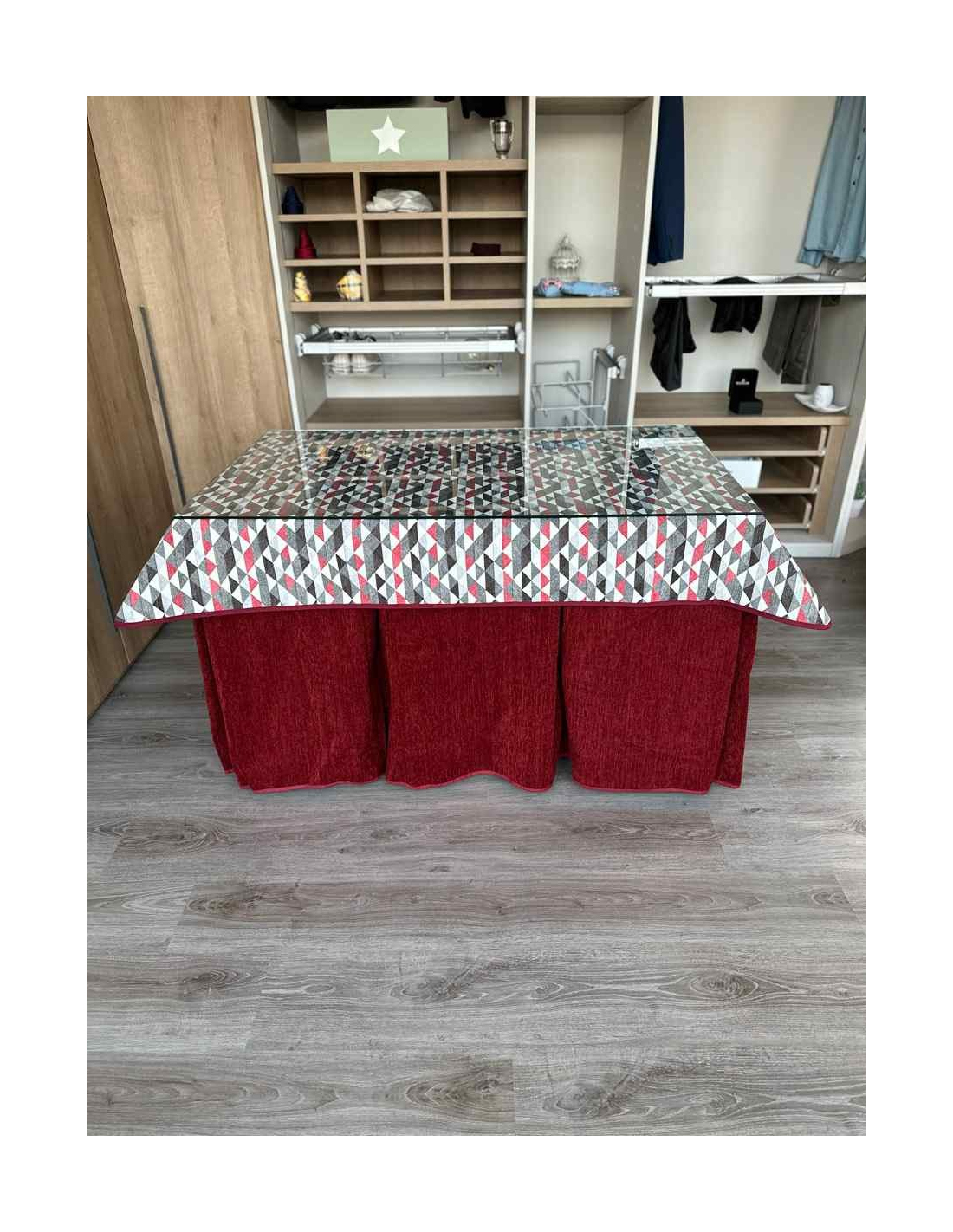 Ropa de Mesa Camilla Doble Grueso 10 Pliegues Rojo con Tapete Red