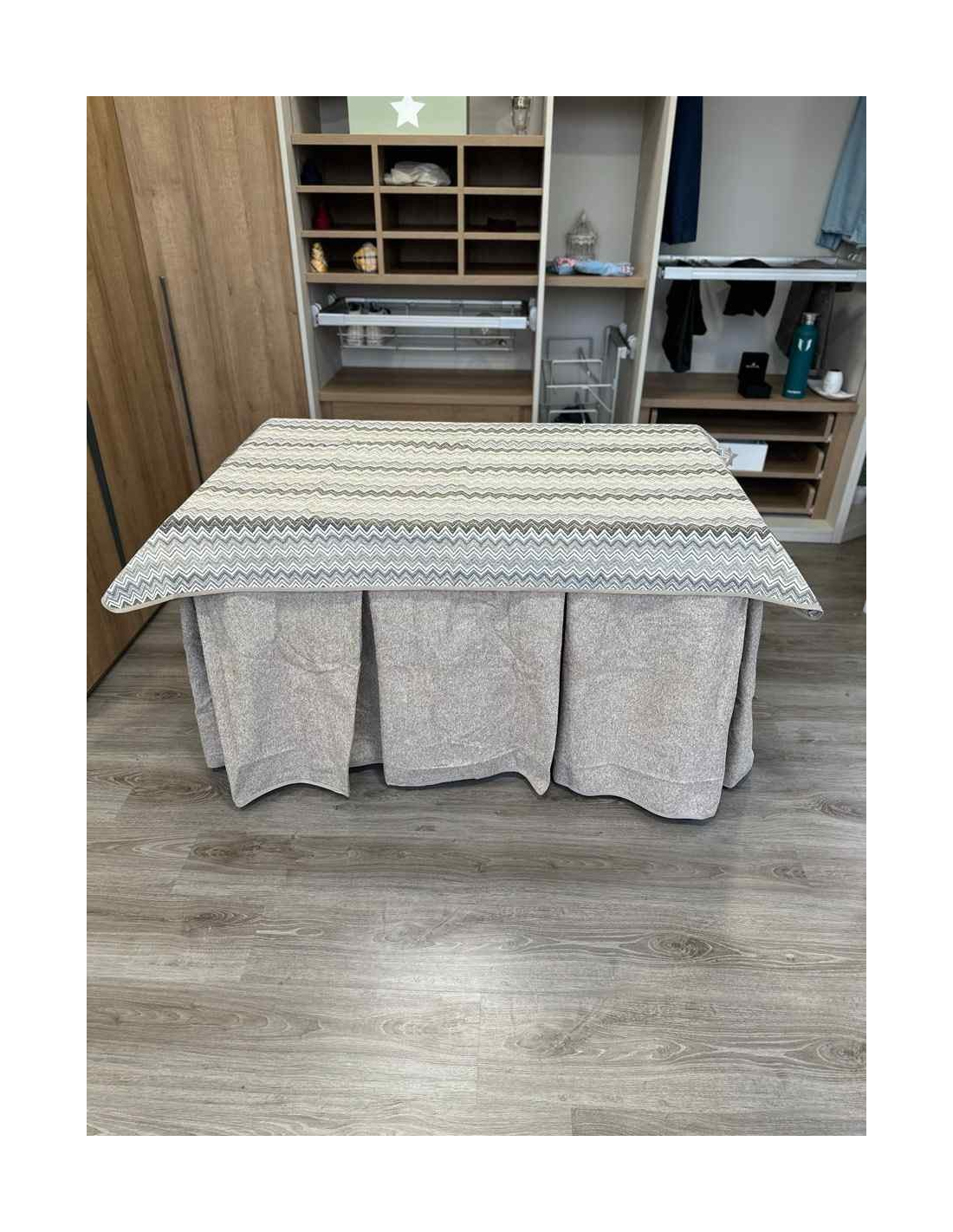Tapete de diseño para crear ambientes en cada rincón de tu casa. La mesa de camilla es un producto que te permite decorar estancias y darles un ambiente acogedor a tu casa. Además evita las manchas cotidianas al comer ya que cubre la parte alta de la ropa de mesa camilla protegiendola de manchas inoportunas. Muy fácil y cómodo de lavar.