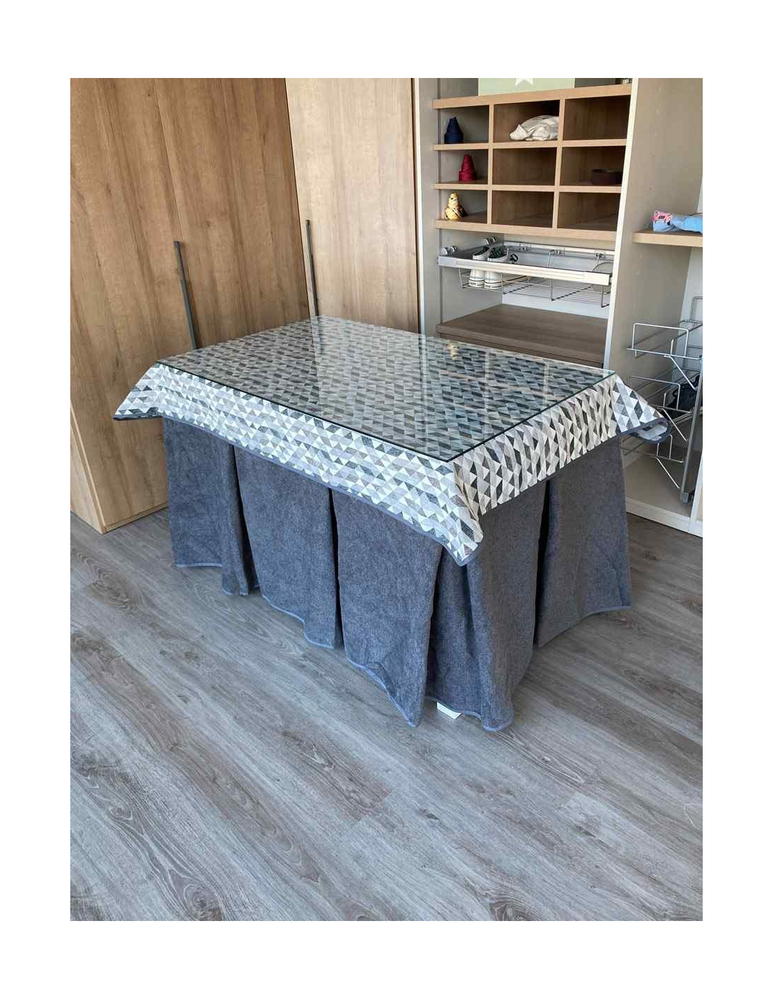 Tapete de diseño para crear ambientes en cada rincón de tu casa. La mesa de camilla es un producto que te permite decorar estancias y darles un ambiente acogedor a tu casa. Además evita las manchas cotidianas al comer ya que cubre la parte alta de la ropa de mesa camilla protegiendola de manchas inoportunas. Muy fácil y cómodo de lavar.
