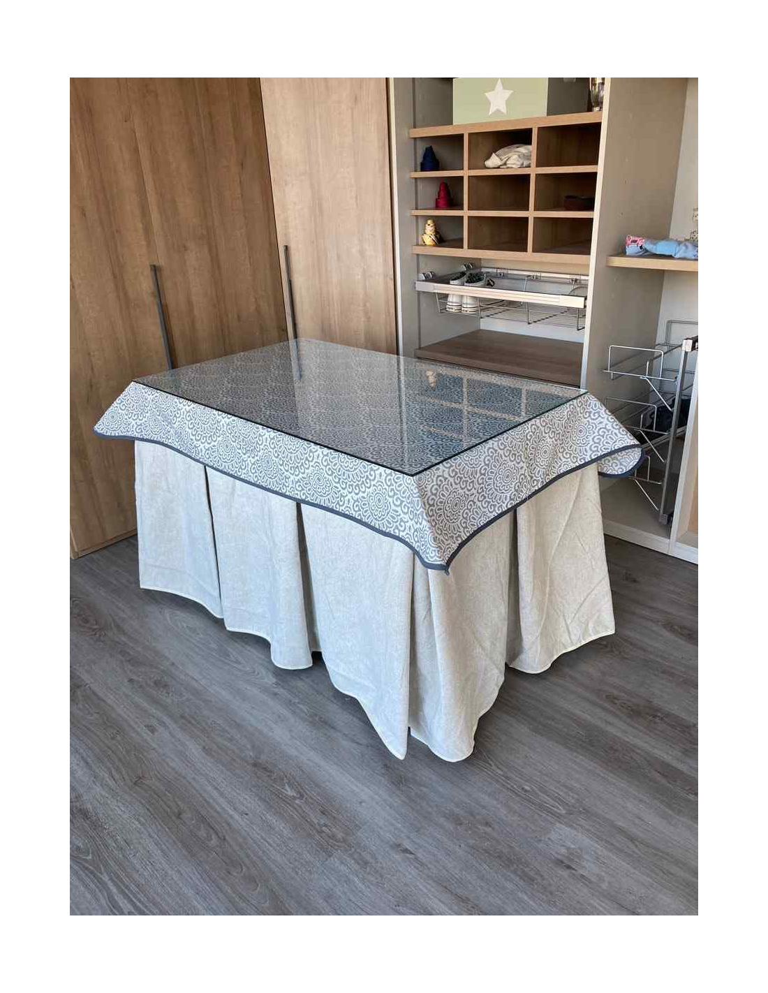 Tapete de diseño para crear ambientes en cada rincón de tu casa. La mesa de camilla es un producto que te permite decorar estancias y darles un ambiente acogedor a tu casa. Además evita las manchas cotidianas al comer ya que cubre la parte alta de la ropa de mesa camilla protegiendola de manchas inoportunas. Muy fácil y cómodo de lavar.