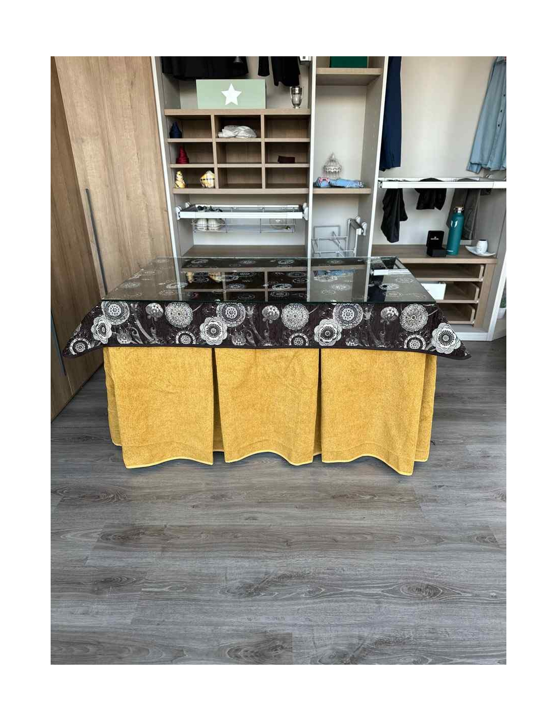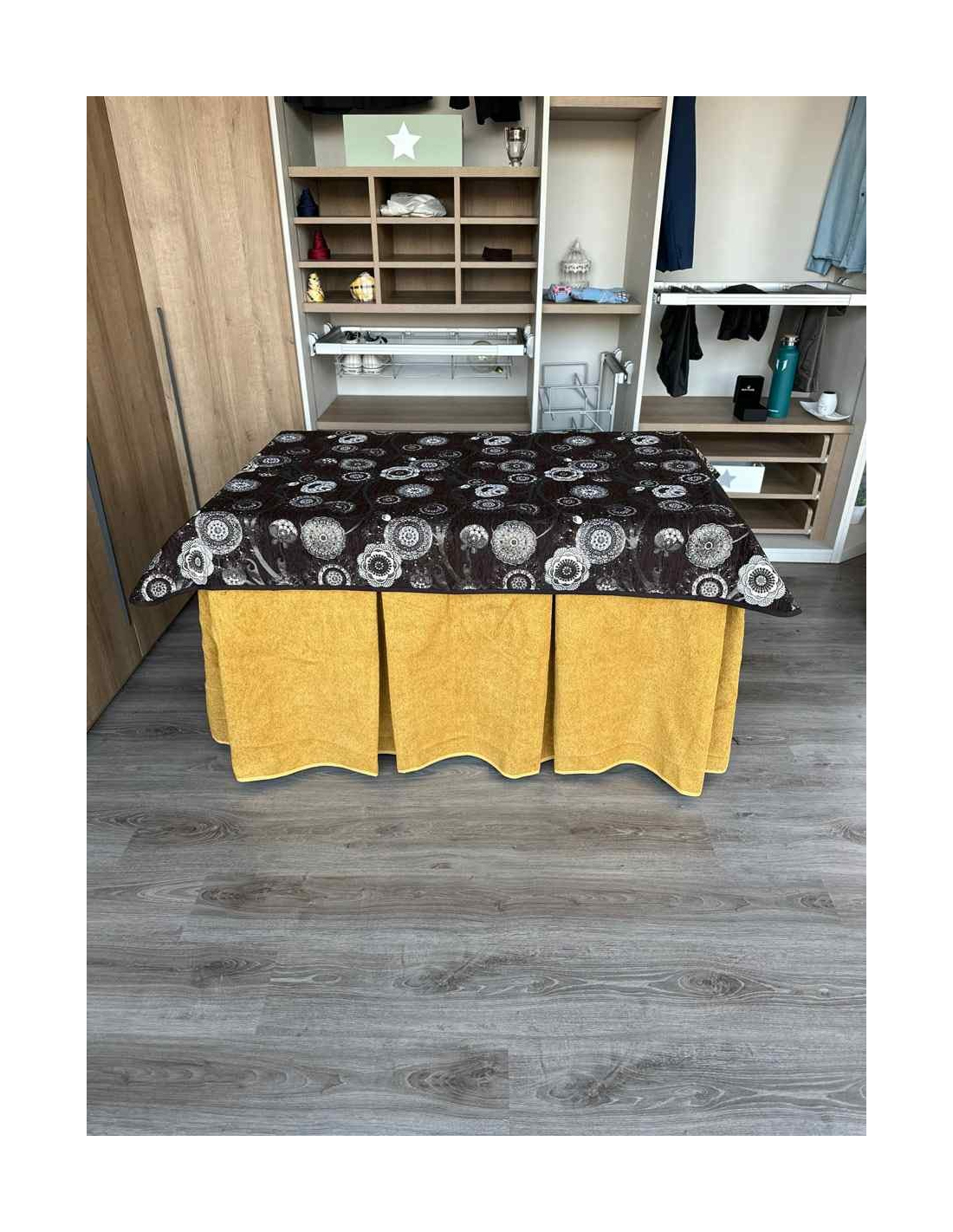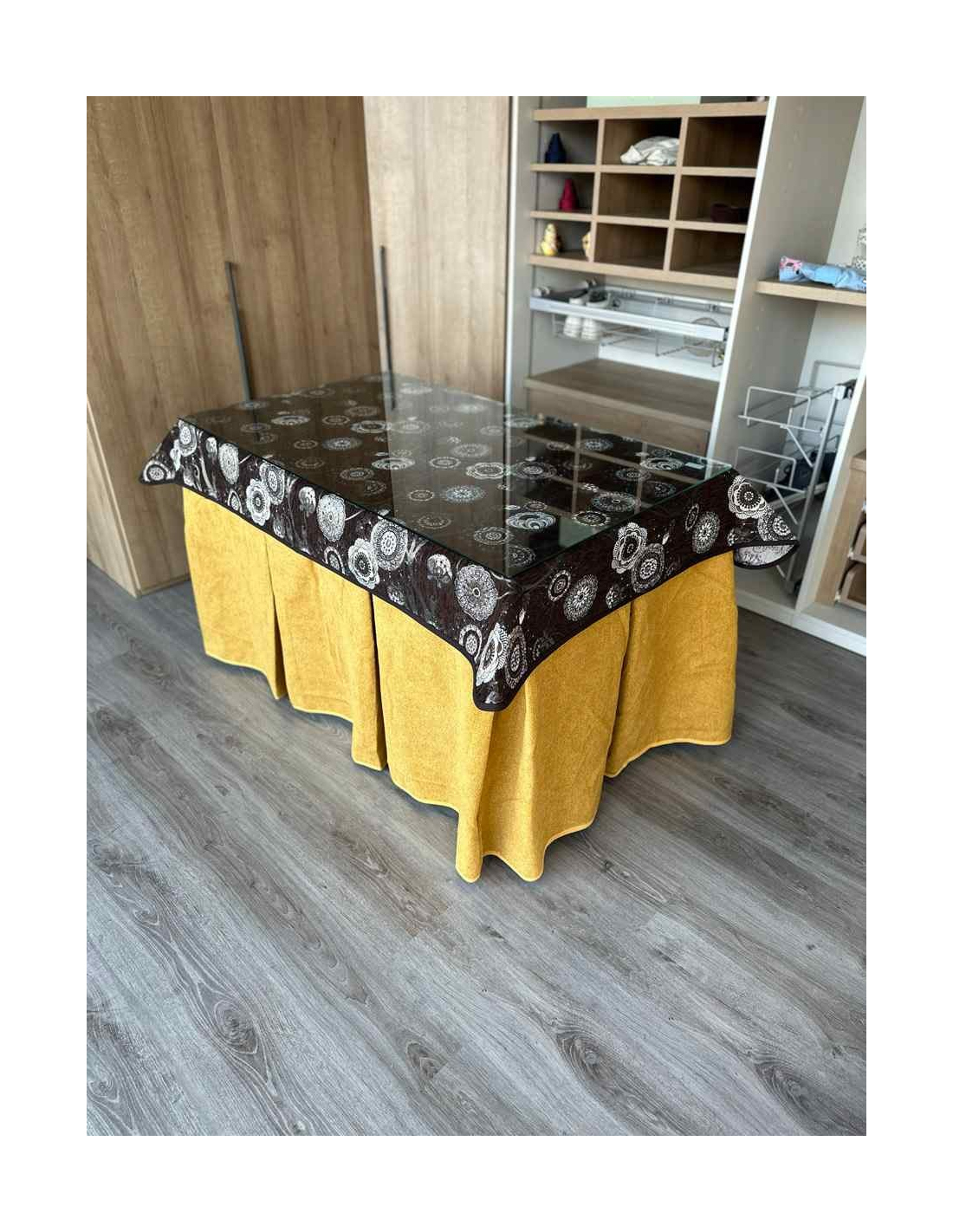 Tapete de diseño para crear ambientes en cada rincón de tu casa. La mesa de camilla es un producto que te permite decorar estancias y darles un ambiente acogedor a tu casa. Además evita las manchas cotidianas al comer ya que cubre la parte alta de la ropa de mesa camilla protegiendola de manchas inoportunas. Muy fácil y cómodo de lavar.