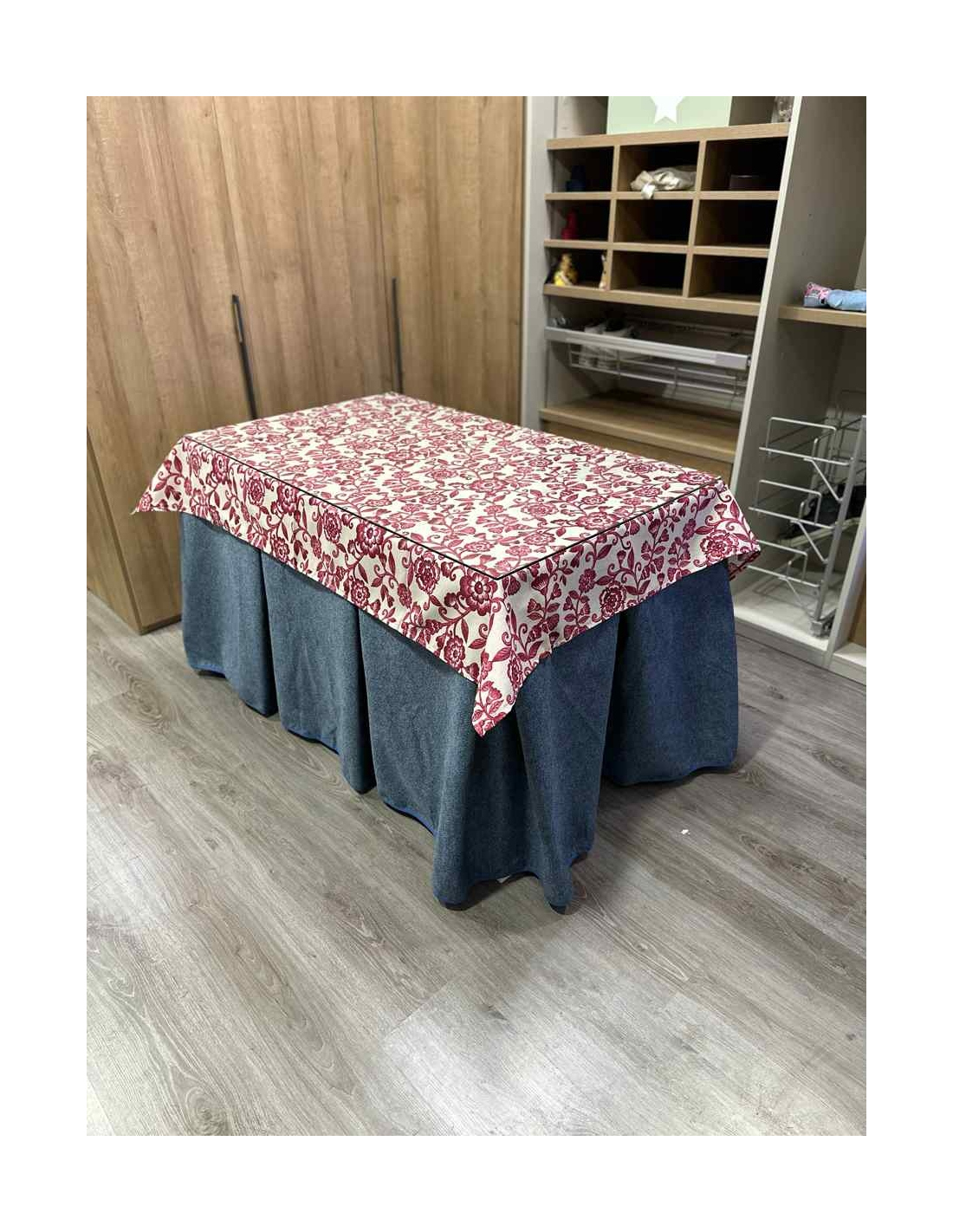 Falda Mesa Camilla Antimanchas Extragruesa Ultraeficiente Azul con Tapete Floral