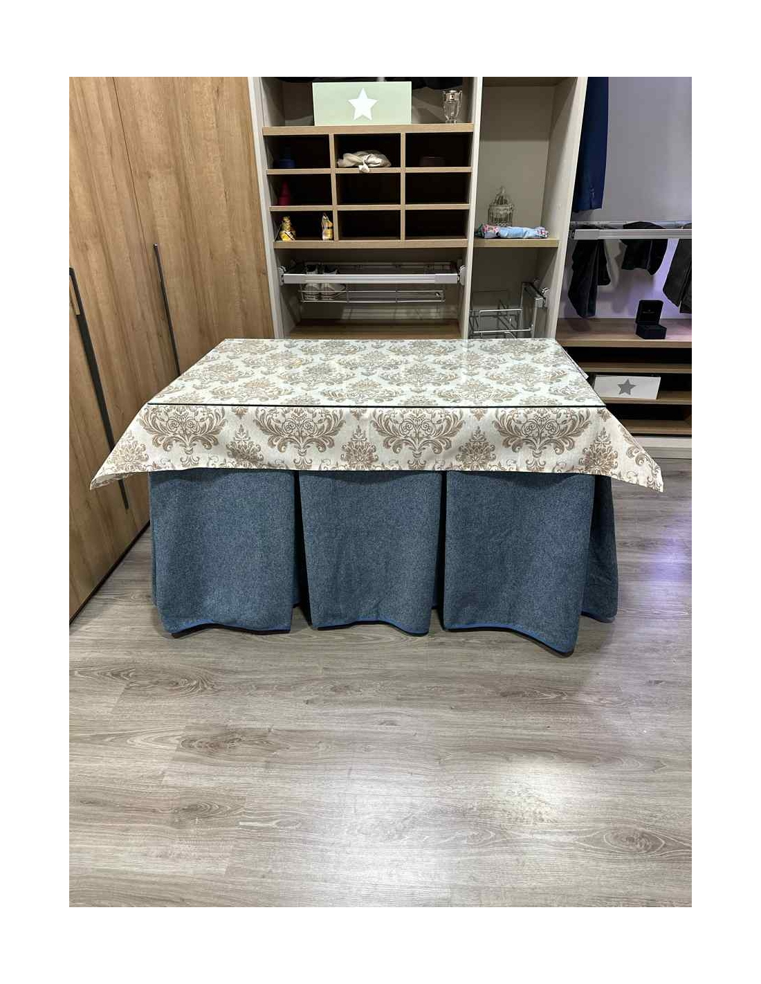 Falda Mesa Camilla Antimanchas Extragruesa Ultraeficiente Azul con Tapete Mosaico Chocolate