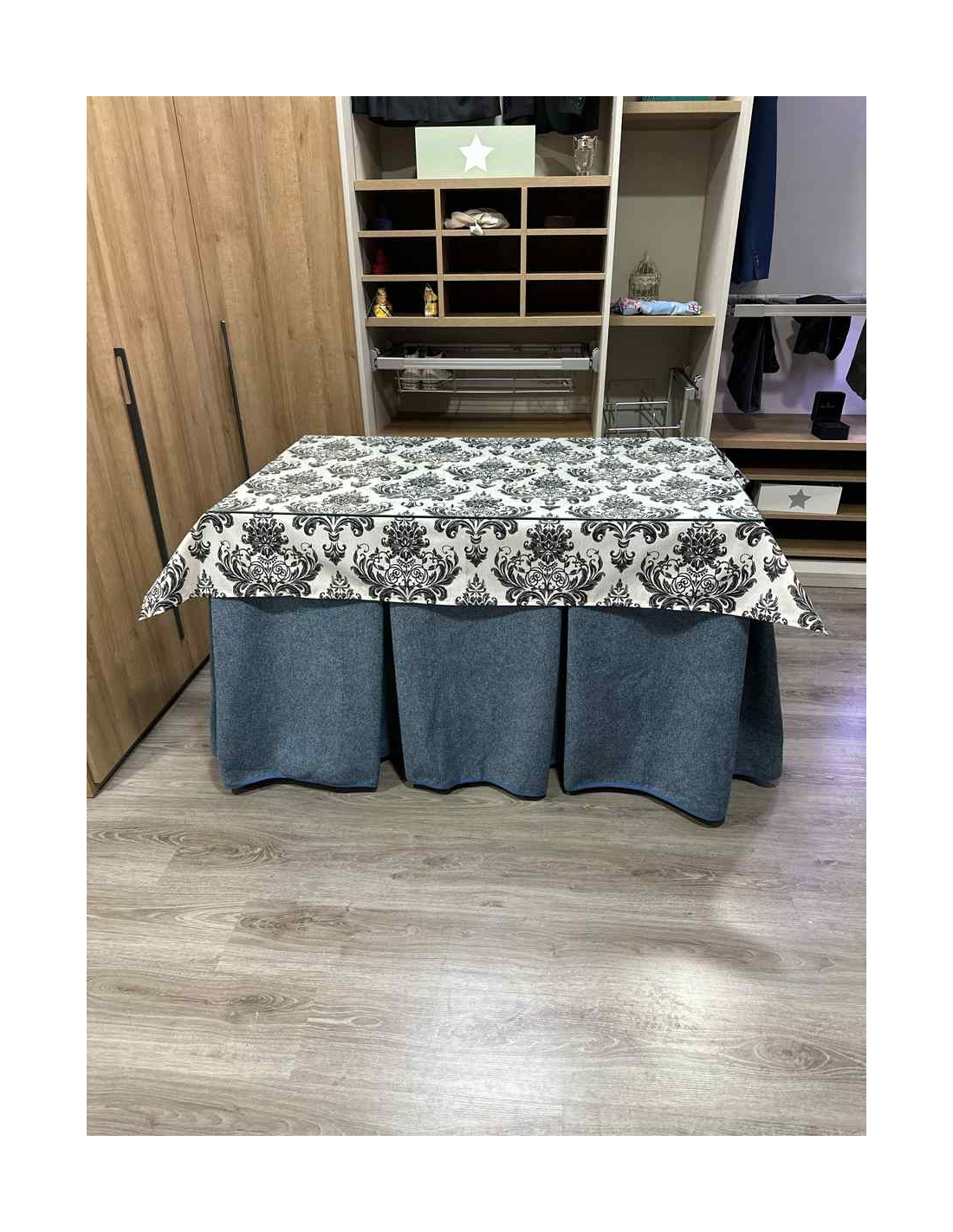 Falda Mesa Camilla Antimanchas Extragruesa Ultraeficiente Azul con Tapete Mosaico Negro