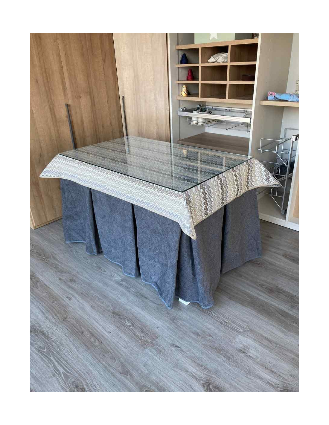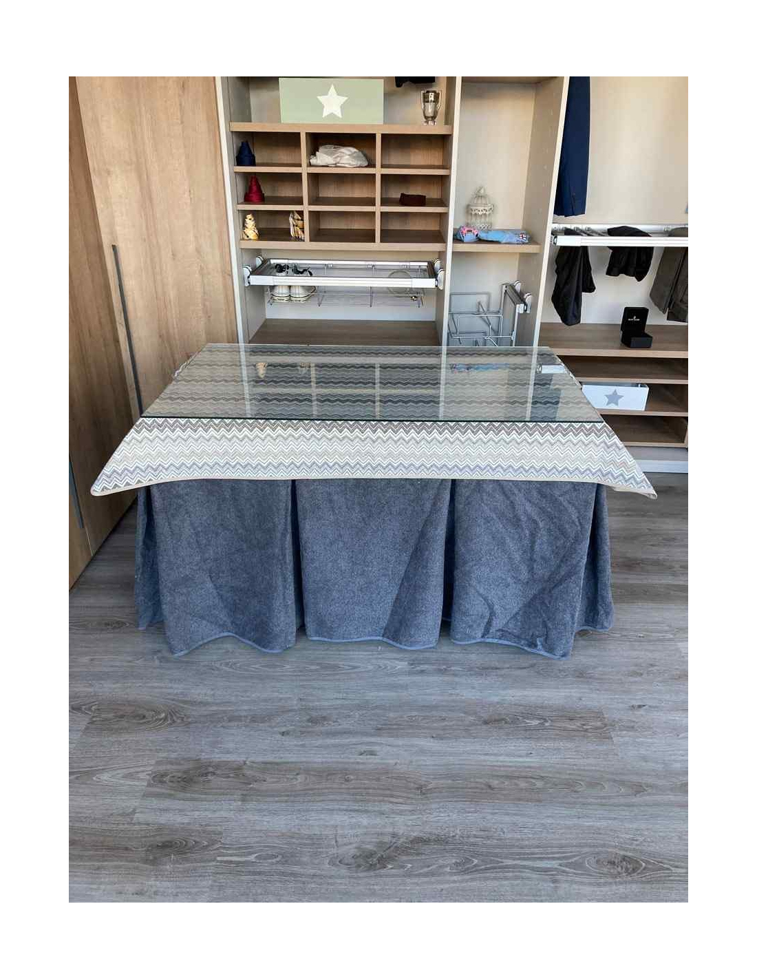 Falda Mesa Camilla Antimanchas Extragruesa Ultraeficiente Gris con Tapete Estriado