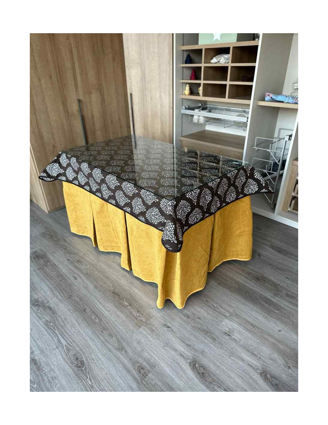 Falda Mesa Camilla Antimanchas Extragruesa Ultraeficiente Mostaza con Tapete Acebo