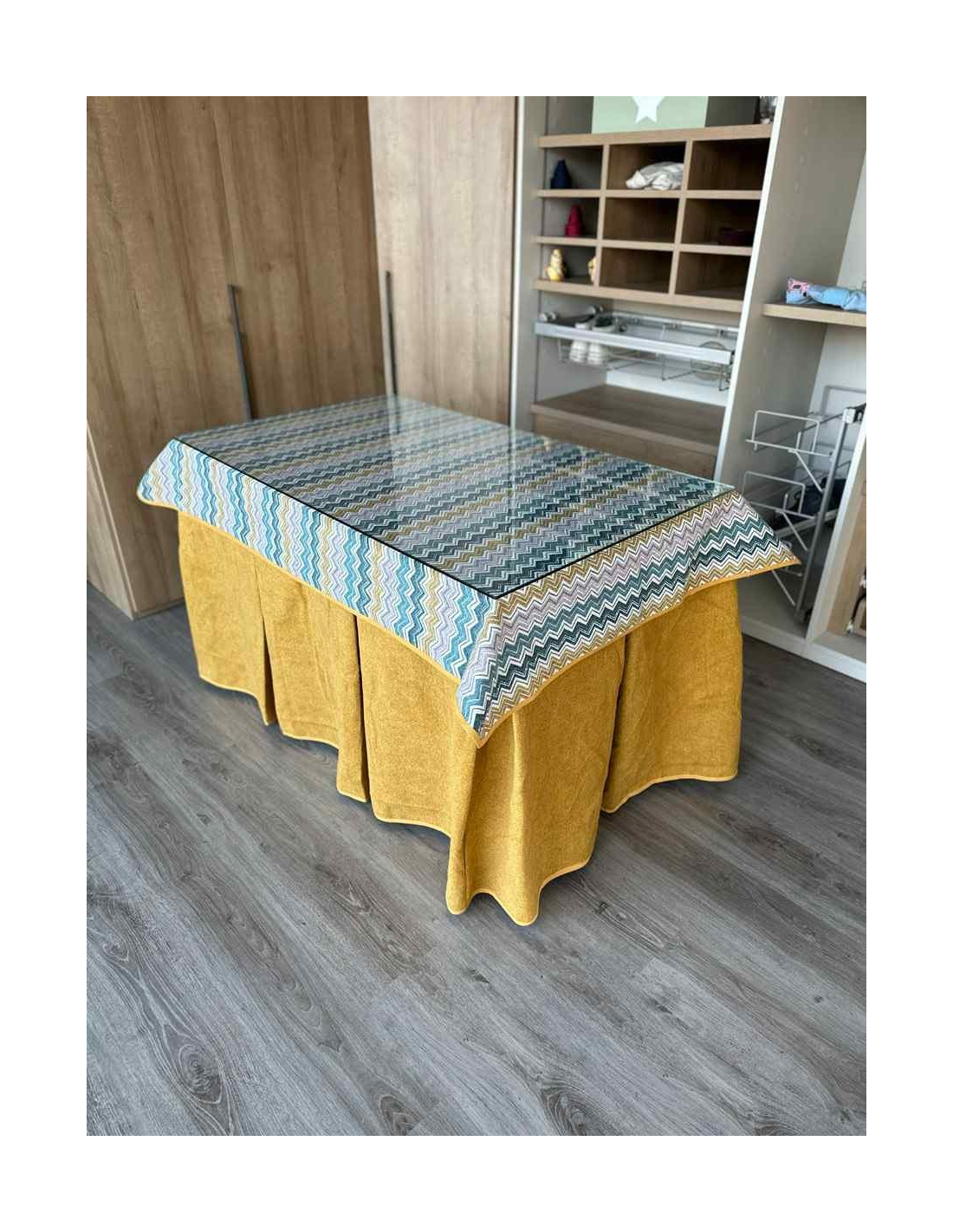 Falda Mesa Camilla Antimanchas Extragruesa Ultraeficiente Mostaza con Tapete ZigZag
