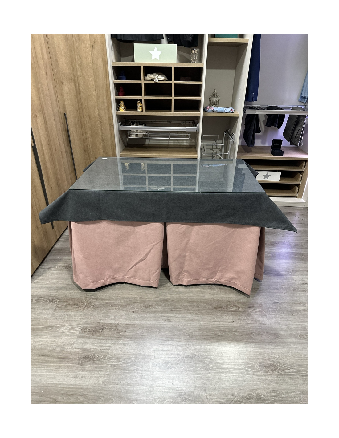 Ropa de Mesa de Camilla Antimanchas Aterciopelada Triplegrueso color Rosa con Tapete Liso Grafito