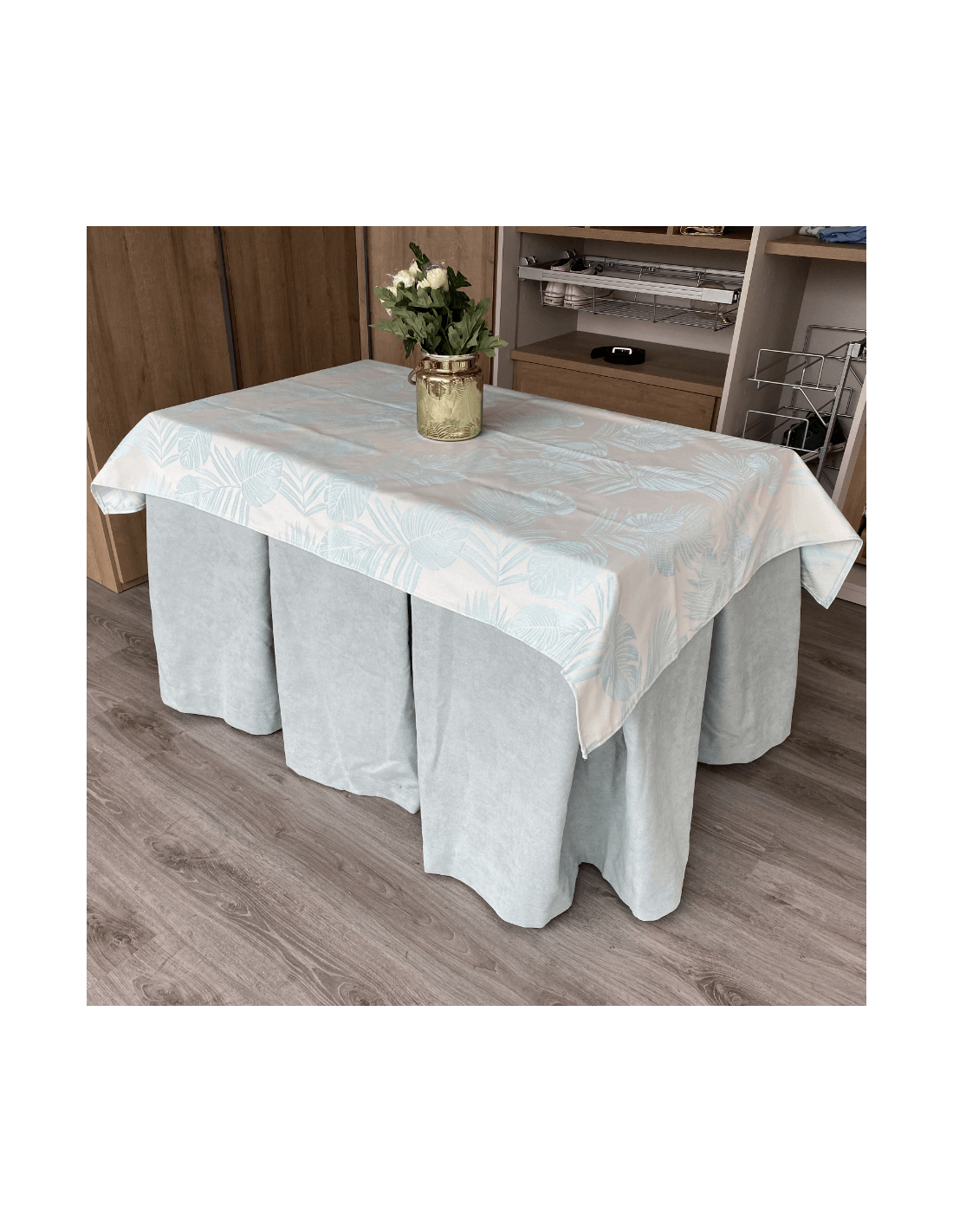 Ropa de Mesa Camilla Antimanchas Aterciopelada Triple Grueso Verde con Tapete Flor REFORZADA 10 pliegues profundos con más tela