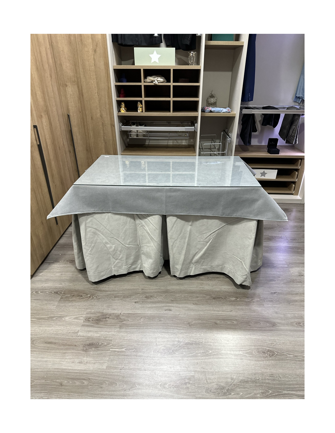 Ropa de Mesa de Camilla Antimanchas Aterciopelada Triplegrueso color Gris claro con Tapete Liso Gris